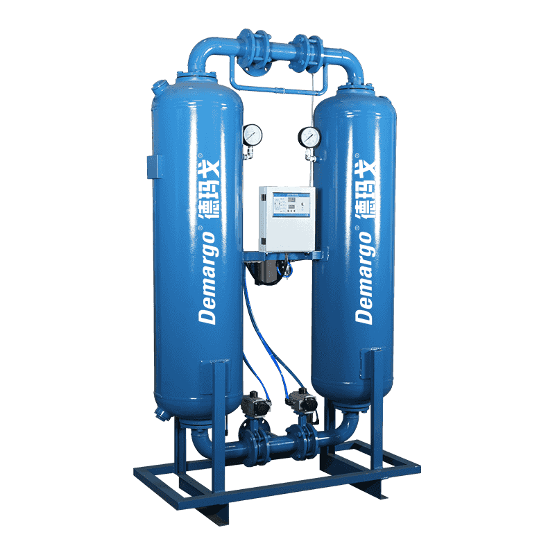 Den varmefrie regenerative adsorpsjonen tørketrommel bruker "trykksvingadsorpsjon" for å oppnå tørkeeffekten. Siden luftenes evne til å holde vanndamp er omvendt proporsjonal med trykket, blir en del av luften etter tørking (kalt regenereringsgass) dekomprimert og utvidet til atmosfæretrykk. Denne trykkendringen gjør den utvidede lufttørkeren, og så er den lov til å strømme gjennom det tørkende laget som ikke er koblet til luftstrømmen (dvs. tørketårnet som har absorbert nok vanndamp). Den tørre regenereringsgassen absorberer fuktigheten i tørkemiddelet og tar den ut av tørketrommelen for å oppnå formålet med avfukting.