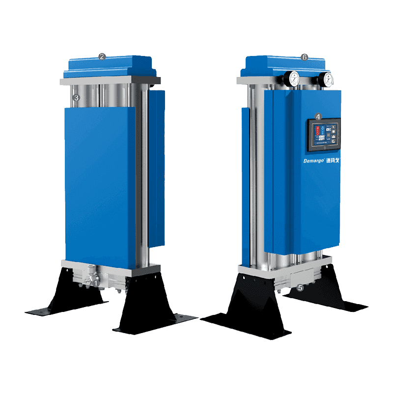 MD -serien Modular Heatless Regeneration trykkluft tørketrommel produsert av selskapet vårt bruker prinsippet om trykk svingadsorpsjon og vedtar motstrømvarmefri regenerering for å tørke trykkluften. Strukturen er en dobbelt tårntype, den ene adsorberer og den andre regenererer.